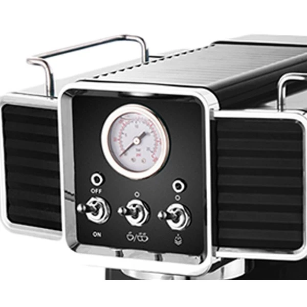 ویژگی های محصول: توان موتور: 1350 وات فشار بخار:20 بار وزن: 3650 گرم جنس بدنه: فلز و پلاستیک تعادل نازل قهوه: یک عدد جنس فیلتر: استیل قابلیت تولید کف شیر صفحه نمایش دیجیتالی سیستم خاموشی خودکار